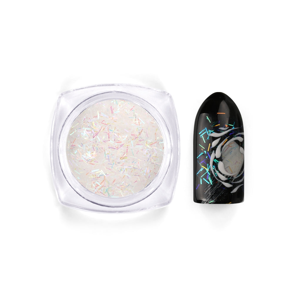Rainbow colored finest micro piece glitter 1.5 x 3.5 mm.